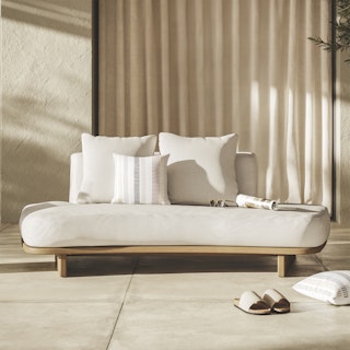 Don’t panic - it’s organic. In shape. But good design is very beneficial to your health. The plinth base has rounded corner details and is built from solid eucalyptus, meaning your sofa is sturdy for sitting/stretching out/chilling, but lightweight for moving. Upholstered with UV- and water-resistant fabric, the Daphne is stain-resistant and will look fabulous for years. Which reminds us to remind you — wear sunscreen!