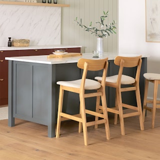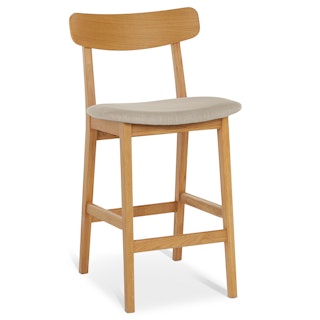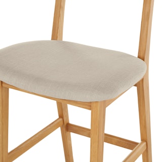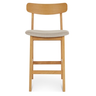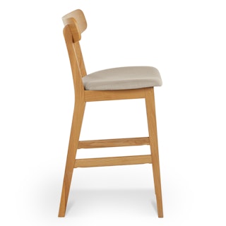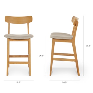 Well-studied. A sturdy solid wood frame supports an engineered wood backrest and fresh, long-wearing fabric seat, updating a classic mid-century schoolhouse frame with modern materials. This versatile stool features a wide, slightly curved back that provides great support for long dinners with friends or late-night study sessions.