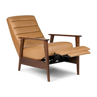 A master of disguise, the Ellow Recliner effortlessly transforms from a mid-century modern lounge chair to a deluxe recliner. Made with high density foam filling and solid walnut legs, the Ellow features a 3-point push back reclining mechanism that gives you more control over the way you lounge. All the way back for your afternoon nap, partially-reclined for a relaxed game show marathon, or fully upright when you’ve got company — the choice is yours.