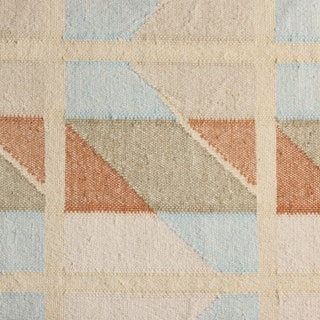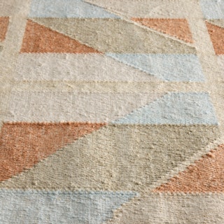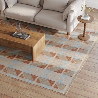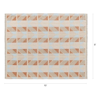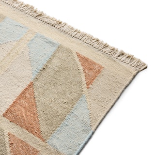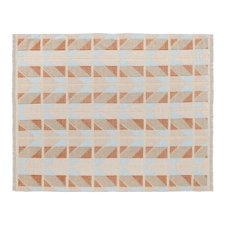 Handwoven by artisans in India, Hannes sports hues of blue, orange, and beige in a playful quilted chevron pattern. Topped off with a short fun fringe, Hannes is set to enchant your home with its charming Scandi vibes.