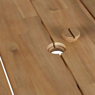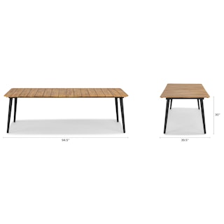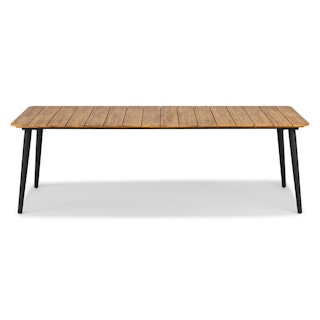 Dinner party ready. The Latta table for 8 is the perfect size for hosting an elaborate patio dinner. Whether you’re ordering fried chicken for a crowd or perfecting your table-side flambe, the Latta’s solid acacia wood topper will make your plates even more photogenic. A powder coated aluminum frame keeps the party going for years, while a thoughtful center hole is ready to house an umbrella. Sun safety, people!