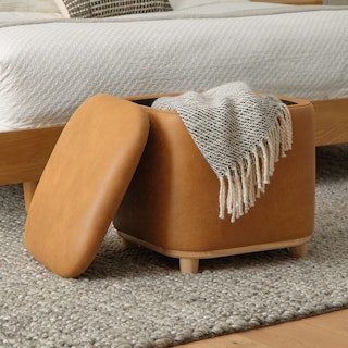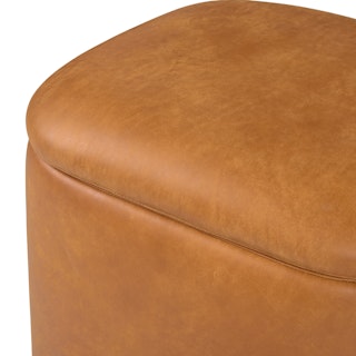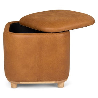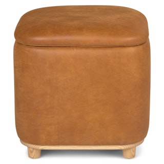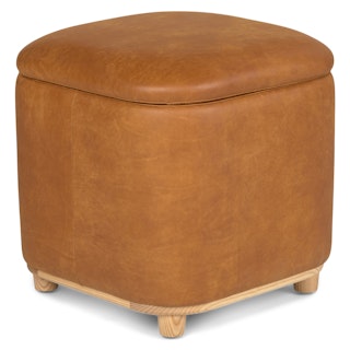 Holds your feet and your stuff. With its soft-close lid and ample storage space, the Maribo Ottoman is a stylish double-threat. Its soft, suede-like leather upholstery doesn't hurt either.