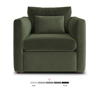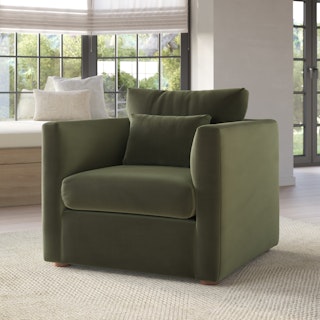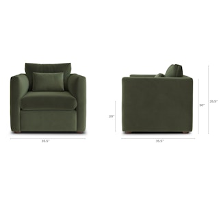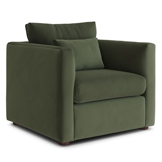 How do you want to feel? Elevated. Comfortable. Calm. Collected. With clean details and pleasing design heft, the Marina lounge chair manages to feel at once laid back and put together. Generously padded seats and armrests encourage long periods of meandering; bolster pillows make perfect props for a surprise nap. Upholstered with Hale velvet, the Marina is fade-resistant, easy to clean, and anti-crush. Throw on your favorite 90s romcom and bask in a little nostalgia.