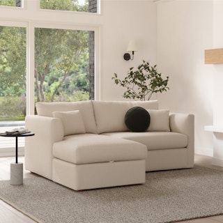 How do you want your sofa to feel? Elevated, comfortable, calm, and collected. With clean details and pleasing design heft, the Marina reversible storage sectional manages to feel at once laid-back and put together. Generously padded seats and armrests encourage long periods of meandering, while the hidden storage below the chaise can hide all kinds of goodies. Upholstered with our super soft Bouclé fabric, the Marina is low-absorption with a signature bouncy texture. Throw on your favorite 90s romcom and bask in a little nostalgia.