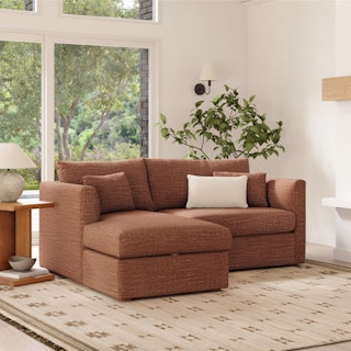 How do you want your sofa to feel? Elevated, comfortable, calm, and collected. With clean details and pleasing design heft, the Marina reversible storage sectional manages to feel at once laid-back and put together. Generously padded seats and armrests encourage long periods of meandering, while the hidden storage below the chaise can hide all kinds of goodies. Upholstered with Napa fabric, the Marina is treated with a stain-repellant C0 finish, offering exceptional protection to your sofa while being free of gross forever-chemicals. Throw on your favorite 90s romcom and bask in a little nostalgia.