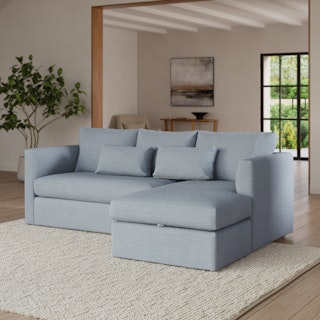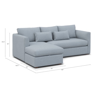 How do you want your sofa to feel? Elevated, comfortable, calm, and collected. With clean details and pleasing design heft, the Marina reversible storage sectional manages to feel at once laid-back and put together. Generously padded seats and armrests encourage long periods of meandering; grab the sheets from the hidden storage and fold out that memory foam mattress for a more serious nap. Upholstered with LifeGuard™ fabric, the Marina has stain-repellant fibres woven in at the fabric level, for an inherently stain resistant and easy to care for product. Throw on your favorite 90s romcom and bask in a little nostalgia.