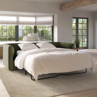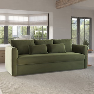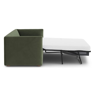 How do you want your sofa to feel? Elevated. Comfortable. Calm. Collected. With clean details and pleasing design heft, the Marina sofa bed manages to feel at once laid back and put together. Generously padded seats and armrests encourage long periods of meandering; fold out that memory foam mattress for a more serious nap. Upholstered with Hale velvet, the Marina is fade-resistant, easy to clean, and anti-crush. Throw on your favorite 90s romcom and bask in a little nostalgia.