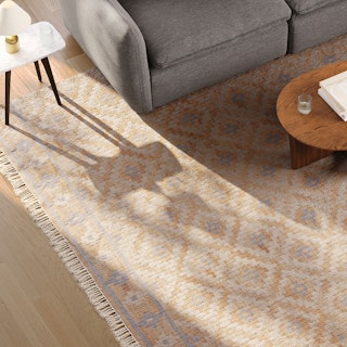 Une Naturale. Woven from a blend of jute, cotton, and wool fibers, Mattis features an intricate hand-woven pattern and a playful fringe finish. It serves as an elegant underlay for your coffee table or a striking showcase rug that allows you to pause and appreciate its natural composition.