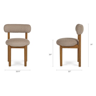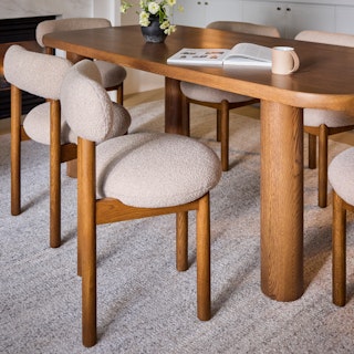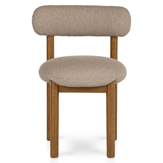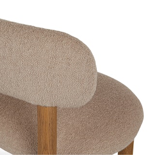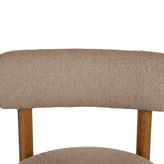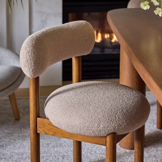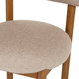 The best of both worlds: the Munk chair has a strong, solid foundation of solid wood, and is set apart by a round tuffet of bouclé and foam filling. A slightly curved backrest makes it restful to relax at the dinner table, or your desk, or you know... in your accent chair location.