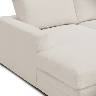 Upholstered in our ever-so-soft Bouclé fabric, you can enjoy your morning cuppa in peace. Whether you want the ultimate lounger to melt into its plump poly-fill cushions, or lean against its sturdy corner-blocked frame when it's time to sit up and make your point, Riley is gentle but firm.