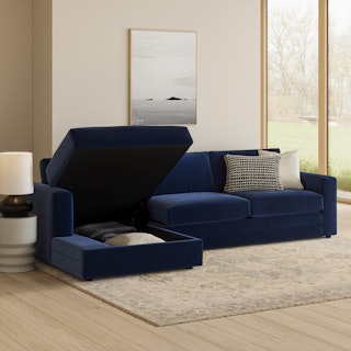 Riley 118" Velvet Left Storage Sleeper Sectional - Hale Ink