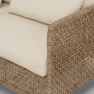 The best kind of fair-weather friend. With synthetic all-weather wicker, the Robbi Loveseat Set just wants to spend the summer outside, basking in the sun and soaking up the happy vibes of your al fresco dinners. The open-weave wicker feels visually light and relaxed, and the thickly stuffed, weather-resistant cushion is the perfect spot to rest after a long day of playing in the yard.