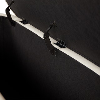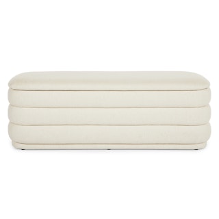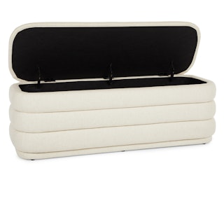 Contemporary yet retro. With its playful shape and smooth cotton-blend upholstery, the Rolph seamlessly blends mid-century design with a sprinkle of glam. Boasting ample storage space with a soft-close lid, you get all the modern amenities but with a touch of vintage charm.