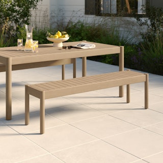 More than just a pretty base, the Rosa Bench is built from solid eucalyptus wood, with dowelled legs and a slatted top. Eucalyptus wood is known for being super dense and light — strong enough to make a robust and solid bench, yet simple to move around your space.