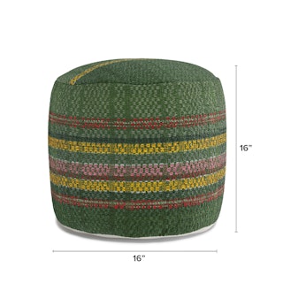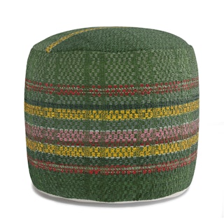 Everyone, meet Tapio. This cozy pouf features a soft cotton cover, filled with polystyrene beads, making it perfect for fidgety guests. With a vibrant, multicolored striped design wrapped around its green exterior, Tapio is the warm and supportive pouf for in-a-pinch seating or tired leg resting.