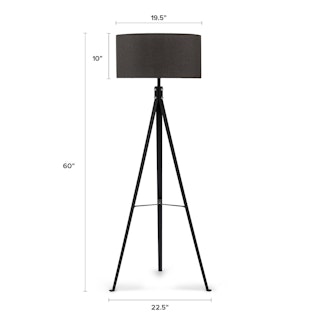 Three legs are better than two. The Trio floor lamp stands 5 feet high, and instantly adds presence to any room. The tripod base is made from structurally sound metal painted with a matte finish. A linen shade and textile-covered cord add the final touches to this beautiful lamp.