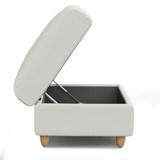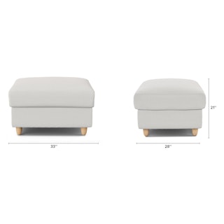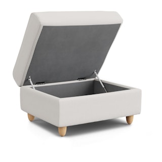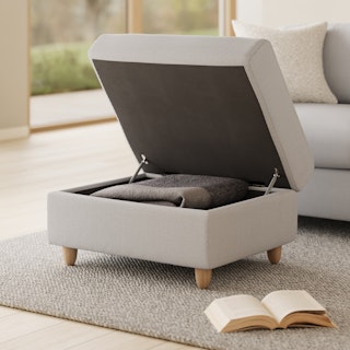 Ottoman? Actually, it's a treasure chest. With its low-profile curvaceous shape and ridiculously cushy cushion, it's ready to stow away your throw blankets, pillows, or that bag of chips you don't want to share.