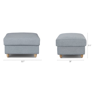 Ottoman? Actually, it's a treasure chest. With its low-profile curvaceous shape and ridiculously cushy cushion, it's ready to stow away your throw blankets, pillows, or that bag of chips you don't want to share.