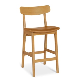 Ecole Leather Counter Stool - Oak and Toscana Tan