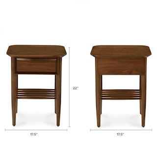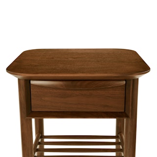 A Mid-Century dream. The Lenia works just as well in a sprawling ranch house as it does in a tiny New York apartment. A solid wood surface gives you space to show off your latest knick-knacks and vintage coasters. Have an impromptu visit? The drawer is there to stash away mess.