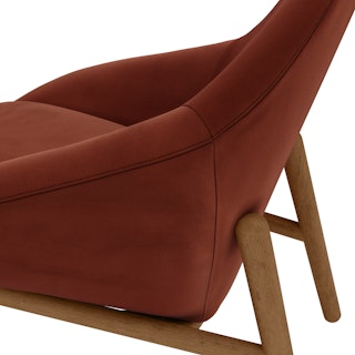 When you want to lounge but you require structure, consider the Sunny chair. A deep wide seat, relaxed armrests, and bowl-like seat are framed with striking solid wood dowels. Visually striking, these minimalist dowels beautifully highlight the relaxed feeling of the chair.